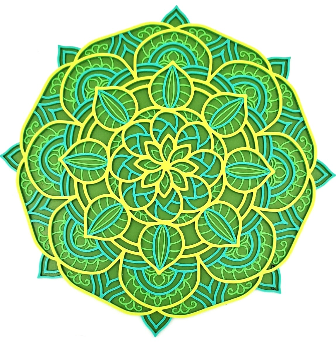 Las dimensiones de Mandala Floral Estilo 2 son 25cm x 25cm x 4cm aproximadamente.