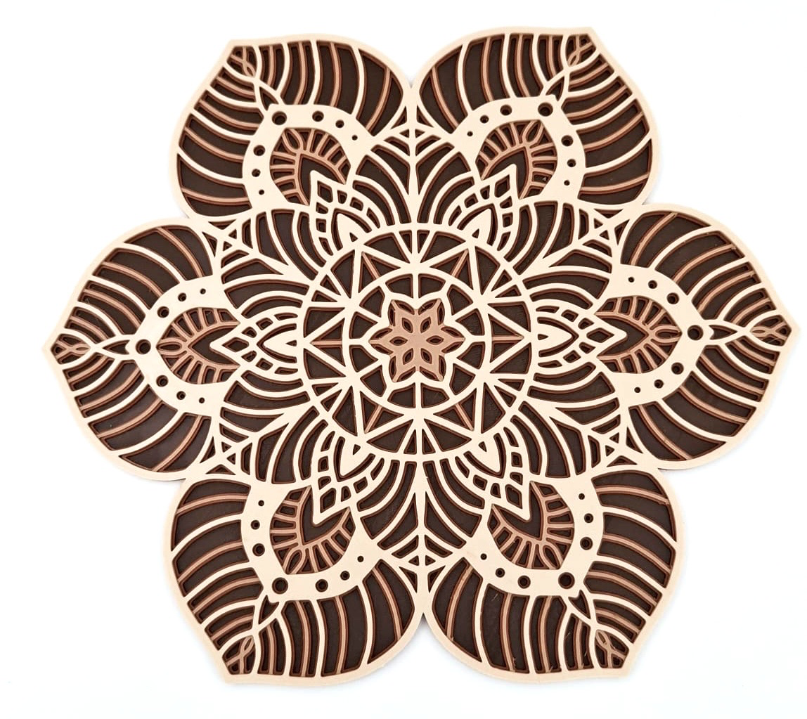Las dimensiones de Mandala Floral Estilo 3 son 22cm x 25cm x 4cm aproximadamente.